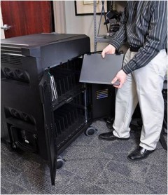 このカートは最大48台のiPadなどのUSB充電タイプのタブレットPCを充電できます。iTunesを使えば同期も可能です。 iPad、iPad2、新しいiPadの他にもiPod Touch 、Amazon Kindle、 Amazon Kindle Fire、Dell Streak 7 、HP TouchPad 、Lenovo ThinkPad (1838 series)なども対応しています。