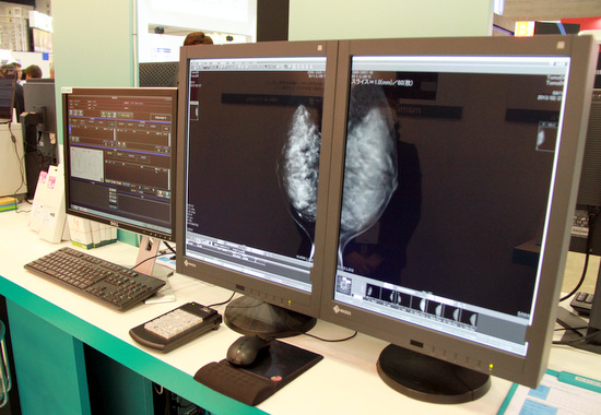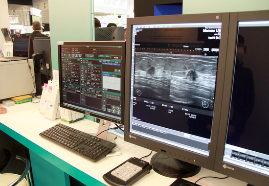 ITEM2013 のブースではマンモグラフィ専用ワークステーション「mammary」を3 セット、異なる3 種類のモニタで展示します。モニタの違いによる表示画像の違いをご覧いただくことも可能です。