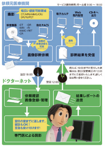 「Tele-RAD」(図1)を利用し始めたのは、2011年の4月から。「ドクターネットのサービスは、いつか利用したいと考えていました。元々、佐藤俊彦先生(同社前社長)と私が福島県立医科大学にいたころからの信頼関係もありましたが、1番は登録読影医の人数の多さが決め手です。人数が多い方が、より安心できると思ったからです」と森谷氏は話す。