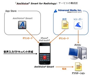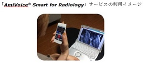 その第1弾として、多忙を極める放射線科専門医向けに「AmiVoice Smart for Radiology」サービスを提供する。同サービスは、放射線科専門医の業務効率向上を目的に、iPhoneまたはiPod touch(以下、iPhone等)を音声入力デバイスとして、読影室や診療室などの限られた環境だけでなく、場所を選ばずに医局、関連施設、自宅、出張先等で読影レポートの作成を支援するものだ。