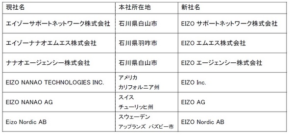 1)社名変更を行うEIZOグループ会社と新社名