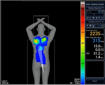 東芝メディカルシステムズ(株)は10月9日、X線循環器診断システムInfinix Celeve™-iに組み合わせるアンギオワークステーションXIDF-AWS801に搭載する、皮膚入射線量のモニタリング機能「Dose Tracking System(DTS)」を開発し、2013年8月より国内外にて臨床使用を開始していると発表した。本システムは、患者の放射線皮膚障害に対する参考情報を、術中に提供するリアルタイムモニタリングシステムで、術中の入射皮膚線量の管理を可能とする。
