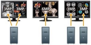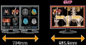 現在、画像診断の表示装置としては、ディスプレイ2台を並べての使用が主流となっているが、2画面間のフロントべゼルによる隙間が発生し、左右の視線移動が負担となっていた。