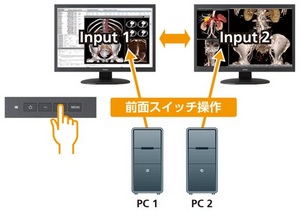 同機前面下部のスイッチボタンにより、ワンタッチで入力の切替が可能。