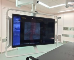 このような高度なIVRには、実際の手技のみならず、事前の治療計画から手技中のガイドやデバイスの位置確認までの幅広い支援が極めて重要となります。IGS730では、術前のCT撮影による3D画像をアンギオ装置で3D撮影をすることなく、透視画像と重ね合わせることができるため(InnovaVision機能)提供が可能となることから、高度化するインターベンションをサポートするとともに、術中の造影剤による3D撮影が不要となり、患者・術者ともに被ばくの低減を図ることも可能。フランス、 リール大学病院では、このDiscoveryIGS730のInnovaVision機能を用いて、特に複雑なステントグラフト内挿術にて大幅に被ばく低減に成功している(文献参照)。このたび国内1号機を納入した高井病院 心臓血管外科の頓田央心臓血管内治療部長は、「自走式により、術中の手元を照らす照明やクリーンな空気を送り込むヘパフィルターなどの干渉がなくなり、行動ラインが自由になります。また、施術の途中で装置をいったん退けても、作業完了後また同じ位置にきちんと戻ってくれることはこれまでにない機能です」と述べ、「今後『低侵襲手術』を主眼に置くためには、ハイブリッド手術室と被ばく低減の機能は必須であり、そのためには、質の高いアンギオ装置を入れることがベストとなっていくでしょう。最先端の技術を活用して、今後はより高度な枝つきステントや穴あきステントなどにも取り組み、地域医療に貢献していきたい」と述べている*1。