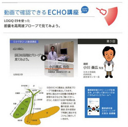 さらに、超音波検査のより一層の価値向上を目指し、日々、積極的に取り組んでいる日本大学病院内科科長・超音波センター長小川眞広氏が様々な同社超音波装置の操作方法(プローブの当て方含む)のコツを動画で説明する「10分でわかる動画で確認できるECHO講座」にも新コンテンツを追加し、内容をさらに拡充する。