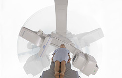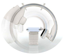 従来型のCアームでは、3D撮影時、Cアームを患者頭部側に配置し、患者に対し180度を超える回転撮影が必要だった。この場合、患者頭部側のアームが回転するための十分なスペースを確保してから回転撮影する必要があった。