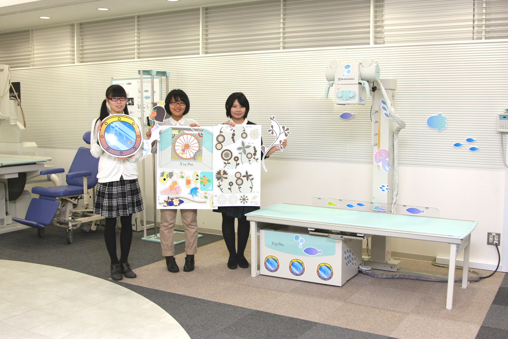 島津製作所の診断用X線撮影装置「X’sy Pro EFX Version」を装飾するイラストシールが、成安造形大学芸術学部の学生のデザインで完成した。