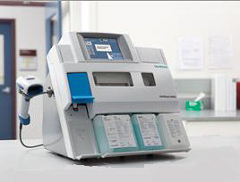 国内販売実績トップクラスを誇るシーメンスの血液ガス分析装置「ラピッドラボ348EX」および「ラピッドポイント500」は、透析液モードで透析液のナトリウム、カリウム等の電解質を測定する。これにより、混合濃度、成分濃度といった透析液の品質を管理することができる。