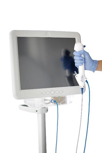 ・オールインワンソリューション:画像処理ソフトウェアを搭載したLithoVue™ワークステーションモニタは、コンパクトなキャスタ付きモバイルカートに取り付けられている。手術の際はLithoVue™システム単独での使用も可能であり、またオペ室にある既存モニタとDVIケーブルで接続して使用することも可能である。