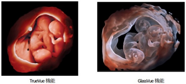これらに加えて、3D/4Dデータから胎児の頭蓋を認識し自動で胎児の顔を表示する“aRevealA.I.”、よりリアリティの高い胎児3D画像を描出する“TrueVue”、胎児の臓器を透過表示し境界を強調表示する“GlassVue”が、胎児の3D超音波診断をサポートする。