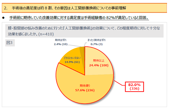 人工関節置換術を受けた患者の約8割が手術満足を実感