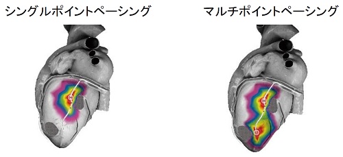 ・「どのようにペーシングするか」に関しては、マルチサイトペーシング機能により、左室の2点からペーシングを行うCRTの新たなペーシングパターンが可能になり、これまでCRT効果を得られなかった症例に対しても血行動態を改善することが可能となった。
