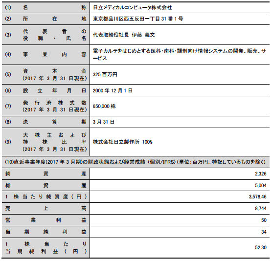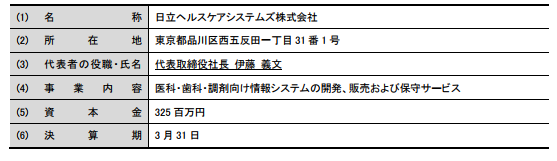 2018年4月1日付で、承継会社である日立メディカルコンピュータ(株)は日立ヘルスケアシステムズ(株)への商号変更を予定している。