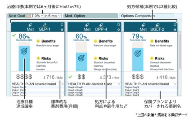 日立製作所とユタ大学、患者と医師の共有意思決定をサポートする「糖尿病治療の処方薬選択支援システム」を開発-処方薬の種類別に治療目標達成確率を予測、電子カルテと連携して副作用などを比較表示-