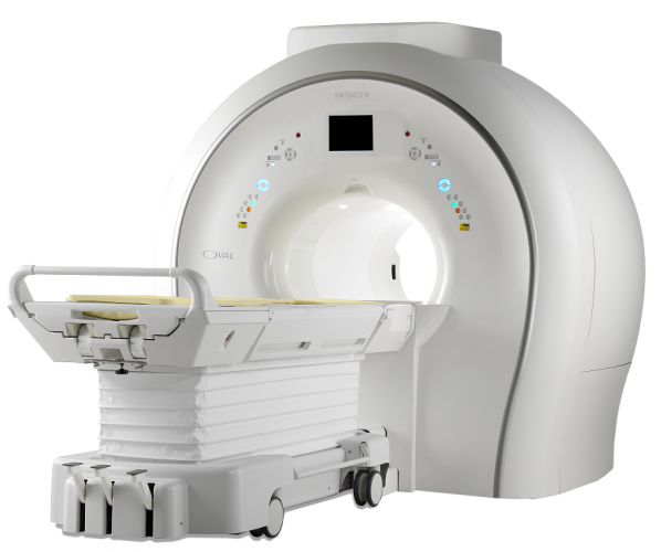 日立は2013年4月から3テスラ超電導MRIシステム「TRILLIUM OVAL」を販売している。1.5テスラ超電導MRIシステム「ECHELON OVAL(エシェロン オーバル)」で好評であった広い検査空間により被検者や操作者に快適な検査空間を提供する楕円形状のワイドボアはそのままに、磁場強度を3テスラにすることで撮像時間の短縮や高画質化を実現した。