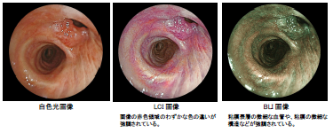 今回発売する気管支内視鏡「EB-580S」は、照射した光と画像処理を組み合わせることで、観察に適した画像を作り出す技術「Multi-Light Technology(マルチライトテクノロジー)」を搭載した内視鏡システムに対応している。通常の白色光観察に加えて、粘膜表層の微細な血管や構造などを強調して表示する機能「BLI」や、画像の赤色領域のわずかな色の違いを強調して表示する機能「LCI」などの画像強調機能を用いて観察することができ、気管支における炎症性疾患や虚血※3 などの微小な病変の発見をサポートする。