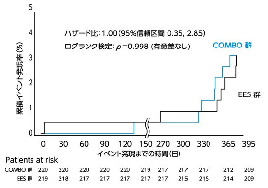 さらに、ステント留置後1年経過時のステント内の健常な新生内膜組織被覆率において、EESに対し優越性が認められた。