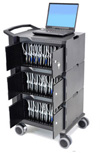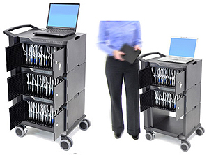 ディスプレイマウント・カート製品で評価の高いエルゴトロンから、新たにiPadなどのタブレットPCを管理する「タブレットPC管理カート」が発売される。このカートはiPadを16台から最大48台を収納し、同時に充電・同期が可能。充電ユニット収納部の扉には鍵もついており、複数台のiPadの管理や安全な保管に最適である。