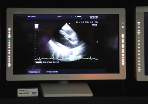 細井氏の製品説明の後、「PVM-2551MD」と液晶モニタを並べ、実際の画像の違いを見るためのデモンストレーションが行われた。その中で超音波診断装置を使用した映像も紹介された。市川 潔氏(ソニー(株)プロフェッショナルソリューション事業本部メディカルソリューション事業部企画マーケティング部商品企画課)は「超音波診断装置で撮影された動画では、有機ELモニタは液晶モニタに比べ、高い動画応答性と黒色表示によるコントラストを示す。超音波診断装置用の医療用モニタとしても高い評価をいただいている」と解説を行い、医療用モニタに有機ELを採用することのメリットを強調した。