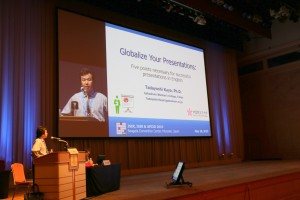 演者たちの講演を聴いていると、昔と比べて英語プレゼンのレベルが飛躍的に向上したのを実感する。個人の努力もあるだろうし、グループで勉強会を開いて切磋琢磨している人たちもいる。フロアからの発言も、以前よりは少し増えた。この動きがますます加速化していくとよい。