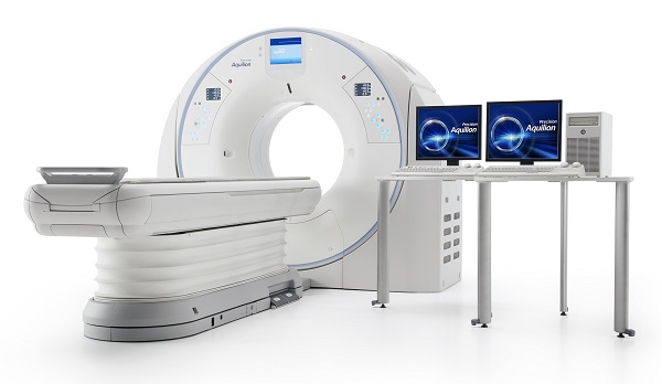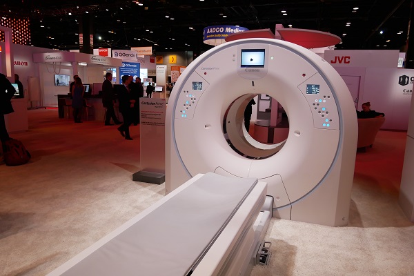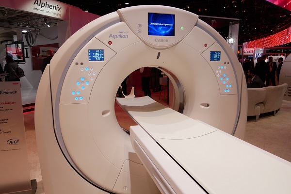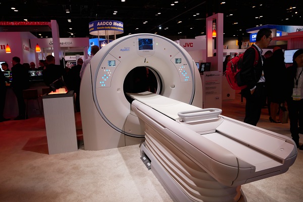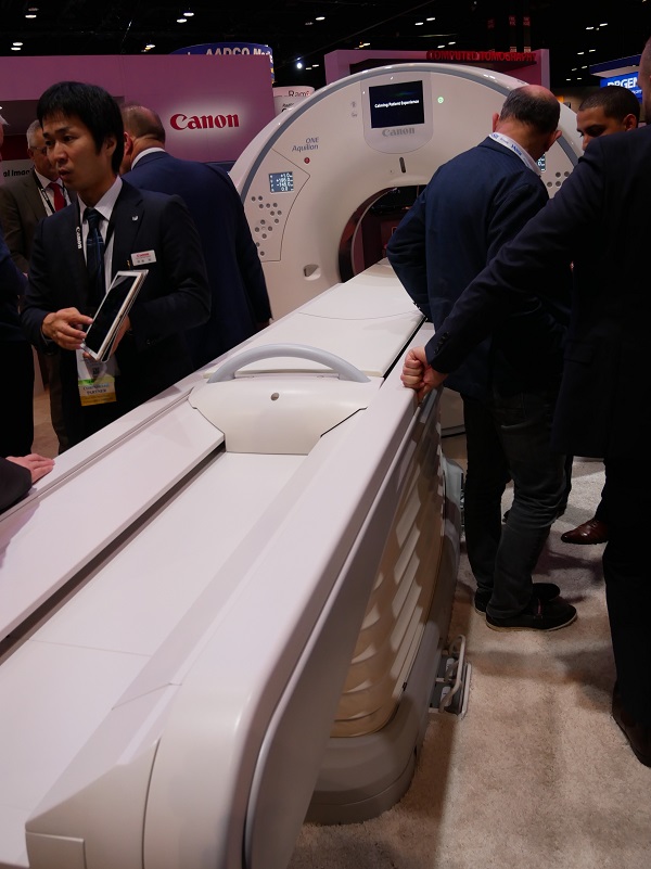 今回のCTのテーマは「ディープラーニング」。展示されていたAquilion Prime SP、Aquilion Precision、Aquilion ONEのすべてにノイズ除去再構成技術「Advanced intelligent Clear-IQ Engine(AiCE)」が搭載されている。なかでも注目したいのはAquilion ONE/PRISM Editionだ。