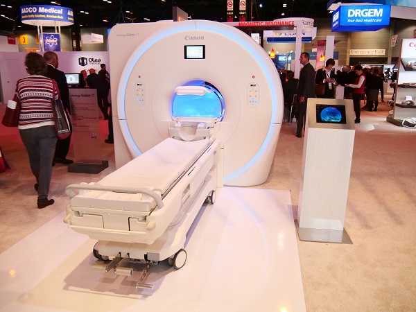 3TMRI装置。ノイズ除去再構成技術「Advanced intelligent Clear-IQ Engine(AiCE)」と高速撮像技術「Compressed SPEEDER」などの高速化アプリケーションを組み合わせることで、高精細な画像をスピーディーで撮像することを可能にしている。さらに、患者さんの入れ替えを迅速にするドッカブル寝台(着脱可能な移動式の寝台)を採用し、ワークフロー改善に貢献している。