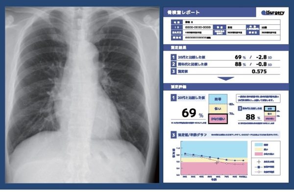 iSurgeryが提供するAI医療機器は、企業の法定検査項目である胸部X線検査で撮影した写真を活用することで、骨密度測定の追加検査なしに骨の状態の評価が可能であることから、今般、共同で実証実験に取り組むこととした。