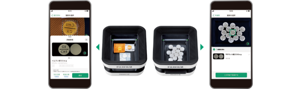 入院患者が持参する服用薬を、スマホで撮影し独自のAI技術で瞬時に高精度に識別する機能を有し、薬剤師や看護師などの持参薬鑑別業務の負担軽減と正確性向上に貢献する。アプリ・スマホ・専用撮影台のシンプルなシステム構成により、手軽に持ち運びができ、院内で場所を問わず鑑別作業が行える点も特徴である。さらに、「PROOFIT 1D Ⅱ」とのデータ連携が可能であるほか、識別した薬の添付文書などを表示する機能、識別した結果をQRコード化して電子カルテや持参薬管理システムなどへ提供できる機能も搭載するなど、薬剤の識別業務以外の関連業務も幅広くサポートする。また本機能は看護師などが、在宅での服用薬の飲み残し(残薬)を確認する際にも有用である。