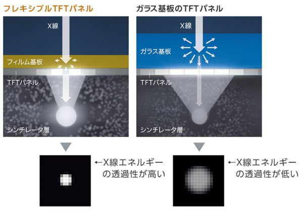 フレキシブルTFTの採用でX線エネルギーの透過性が向上。さらなる高画質・低線量を実現。
