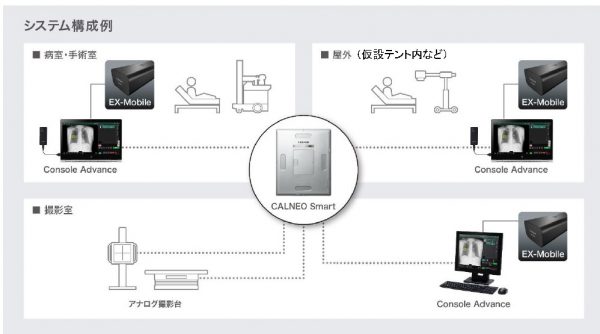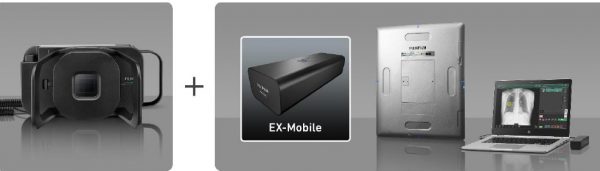 「EX-Mobile」は重量約500gと軽量小型で、 汎用X線撮影装置や移動型X線撮影装置などを使う現場で使用できるため、救急や在宅診療、また新型コロナウイルス感染症対策として設置された発熱外来用仮設テント内など、さまざまな環境下におけるX線撮影において、迅速な診断のための活用が期待される。「EX-Mobile」を活用することで、医療従事者間での素早い情報共有が可能となり、医療従事者の効率的なワークフローの実現に寄与する。