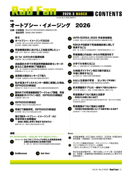 Rad Fanは放射線科医らが自ら編集に深く関わり、放射線医学に関する話題を広くとりあげて医師や技師、企業人など放射線医学に関わるあらゆる方々を対象に、「放射線医学のファンとして」この仕事を選んだ医師・技師・企業技術者・営業担当者などみんながより“楽しく”仕事ができることを願って刊行しております。
