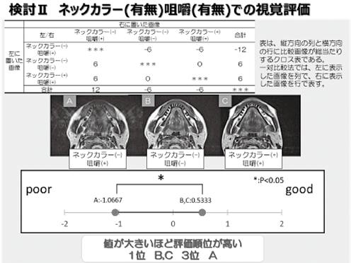 検討Ⅱ ネックカラー(有無)咀嚼(有無)での視覚評価