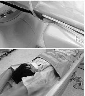 CT検査時、患者を寝台上に寝かせ、天板をガントリー開口部へスライドさせる必要がある。この際、寝台と天板の間には溝が存在するため、この溝に患者自身や衣類が挟まったり、患者に繋がれたチューブ等が引っ掛かったり、巻き込まれたりと医療事故に発展してしまう可能性がある(図2 a)。このシーツのサイドにはベロが付いており、天板スライド時に患者の衣類や点滴チューブ、ドレーンチューブのはさみ込みを防止することができる(図2 b)。