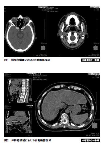 自動輪郭の作成はプリセットを実行する方法と個別に実行方法が用意されている。プリセットはユーザーが編集可能であり、自動輪郭作成の必要がある部位を自由に設定することが可能である。自動輪郭作成を行う臓器が増えるほど要する時間も増加するため、ユーザーが自由に設定できるのはありがたい。とはいえすべての対応している臓器に対し自動輪郭作成をおこなっても、自動輪郭作成に要する時間は頭頸部領域、体幹部領域ともにおよそ1分程度であり、非常に短時間で作成することができる。