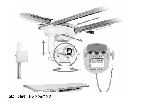 以前はX線管懸垂装置の操作パネルのスイッチが外れてしまうことがあったが、しっかり改良されており外れることはなくなった。リモコンを使用してリモートでX線管を移動させる範囲が4軸から5軸(長手・短手・上下・水平回転・支柱軸回転)へと広がり、設定したいポジションの範囲が広がった(図2、表1)。