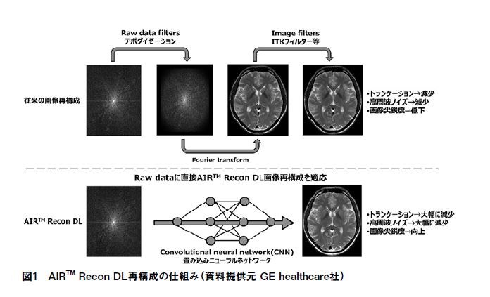 GE healthcare社からAIR IQ Editionという新しいプラットフォームがリリースされ、画質改善とワークフロー改善に繋がる新機能が追加された。今回、その中でも私お気に入りの製品としては、近年様々な分野に応用されているdeep learning(深層学習)を採用したmagnetic resonance imaging(MRI)再構成技術であるAIR™ Recon DLをご紹介したい。当院に2021年5月に先行導入されて以来、画質向上と撮像時間短縮によって、検査ワークフローの大幅な改善を実現してきた。本稿ではAIR™ Recon DLの簡単な特長や当院での使用経験・運用についてご紹介する。