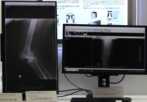 アイ・オー・データ機器ブースでは、「MediCrystaシリーズ」の27型3.6MP「LCD-MDQ271A」と23.8型2MP「LCD-MD241D」をメインに展示。両ディスプレイはDICOM Part14にて規定されるグレースケール表示関数(GSDF)に準拠した表示階調を実現している。