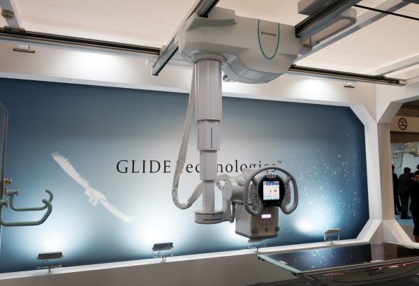 DRを搭載した高機能X線撮影システムRADspeed Pro style edition。撮影後約1秒で参照画像が確認でき、軽量で扱いやすいワイヤレスFPDでポジショニングが素早く行える。数百キロのX線管懸垂器を自然な感覚のまま移動させることが可能で、ワンタッチでアシストレベル3段階の切り替えができる。その他にも、操作の負担を減らし、スムーズに検査が行える機能を装備。新開発のパワーアシスト機能「POWER GLIDE™」(オプション)により、大規模病院からクリニックまで、多忙な医療現場の生産性の効率アップと、医師や診療放射線技師の働き方改革にも貢献している。