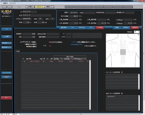 配信レイアウトや印刷のほか、多彩なレポートフォーマットを標準で装備した、循環器領域向けレポーティングシステムKada-Report。お客様からの要望が多かった「被ばく線量管理」や、バーコードを活用して物品の最新情報を迅速に登録できる「物品デバイス自動登録」といった、多彩なアプリケーションを装備している。血管造影検査あるいは治療用のカテフォーム、生理検査用のエコーフォームを幅広く用意。レポート画面から検査動画像を瞬時に再生し、電子カルテシステムとの連携も簡単に行える。
