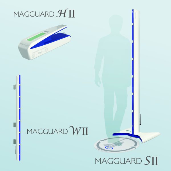 磁性体検知器MAGGUARD(マグガード)は、全てのラインナップにおいて3次元配置した超高感度磁気センサiMus(イムス)を搭載し、より利便性の高い磁性体検知器として生まれ変わった。MAGGUARD-S Ⅱ(スタンド)、MAGGUARD-WⅡ(壁掛け)は、iMus による感度の向上、AIによる感度調整の自動化、ダッシュボードアプリによる設定確認・変更ができ、様々な環境・ニーズに合わせた運用が可能。MAGGUARD-H Ⅱ(ハンディー) は、iMus センサ位置を2カ所にし、検知範囲を広げ、効率的なスクリーニングが手軽に行える磁性体検知器となっている。
