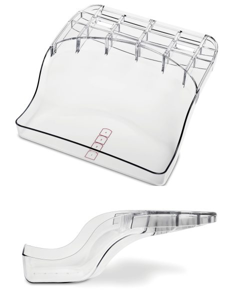 昨年提供開始した圧迫板「SmartCurve2」は乳房圧迫時の被検者の不快感軽減のために開発されたが、同時に診療放射線技師がポジショニングの際に手を抜きやすく、快適性が向上する。小乳房用の「SmartCurve Mini」では圧迫面を山型にしたことで乳頭までしっかりとおさえ、画像の乳頭側に圧迫板のラインが写り込むことがない。