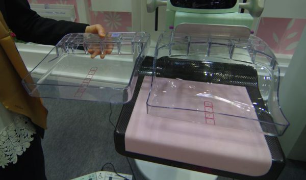 マンモグラフィ検査が回避される理由のひとつに圧迫されたときの痛みや不快感があげられるが、それを軽減するために開発されたSmartCurveが,SmartCurve 2へと進化する。SmartCurve 2は,圧迫板の形状やカーブを改良し,その形状から乳房をポジショニングする際に診療放射線技師が手を抜きやすくし事故のリスクや手の損傷を低減する。さらに圧迫する平面部分を乳房の形状に合わせることで,より撮り残しエリアが少ない画像取得を可能にした。また,日本人に多い小乳房向けのSmartCurve miniもラインナップとして追加され、マンモグラフィが少しでも快適に受けられるようになり、今後の普及が期待される。