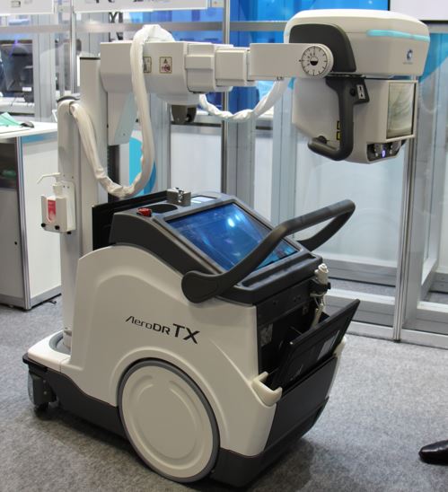 世界初となるパルスX線の連続照射による動画撮影に対応した、回診用X線撮影装置。カセッテ型デジタルX線撮影装置AeroDR「AeroDR fine motion」と組み合わせることで、患者が撮影室に移動するのではなく、名前の通り、撮影装置が患者のそばに移動し、ICUなどベッドサイドでの撮影が可能になった。従来の静止画に加え、動画によって肺や横隔膜、関節などの構造物の動きを可視化することができるので、迅速な診療、治療に結び付けることができる。