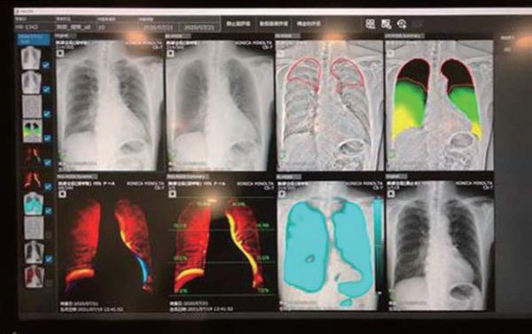 また、X線動画解析ワークステーションKINOSISは、コニカミノルタ独自の画像処理技術を搭載。パルスX線を連続照射にコマ撮りした画像を連続表示することで、横隔膜など、構造物の動きを数値化するほか、肺胞や肺血管などの挙動に信号値変化を捉えて表示。例えば、呼吸や血管の脈動に伴う肺野内濃度変化などを定量化するので、静止画から得ることができなかった情報の収集にも期待できる。