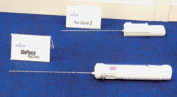アメリカ・アルゴンメデイカルデバイスズ社製のディスポーサブルフルコアバイオプシーシステム。3重構造針が、従来のサイドノッチ型製品と比較して、採取検体の採集量が59%アップ。これにより、病変部位の観察が容易となり、採取の回数も従来の3~4回から、1~2回程度と約半分に減ることで患者負担も軽減される。ゲージは16Gと18Gの2種類。また、ニードルストロークは、ストロークアジャスタをスライドさせることで、13㎜(検体長9㎜)、23㎜(検体長19㎜)、33㎜(検体長29㎜)の3段階に調節できる。