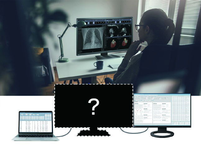 読影医の働き方改革として期待されるホームリーディング。EIZOは、ノートPCとUSB Type-Cケーブル1本で接続できる医用画像表示モニターで、読影医のテレワークを支援する。シンプルな接続で、高品位な画像表示を自宅の読影環境に。開発中の新製品をいち早く見ることができる。