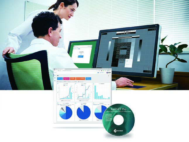 本製品は、モニターの使用状況を一元管理できるモニター品質向上の見込めるアプリケーションである。最新バージョンでは、院内における全EIZOモニターの管理・運用状況が、視覚的に一目で分かるダッシュボード機能を搭載。数値データをグラフで確認できるため、スピーディな状況把握や情報分析に役立ち、管理者の作業効率アップにつながる。