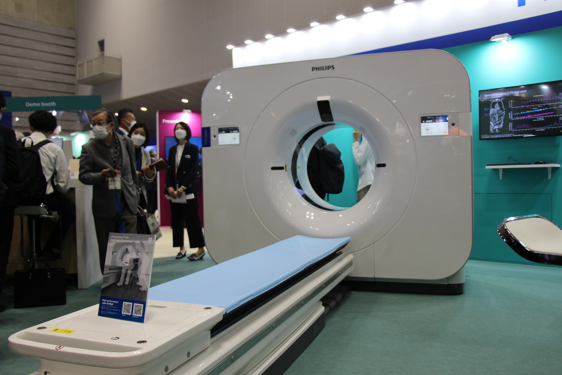 『Spectral CT 7500』は、超高速撮影とスペクトラルイメージングを同時に可能とするCTだ。本製品は、外観から新しく設計されており、80センチの大開口により、幅広い動作と安全な検査を補助する。さらに、検査寝台は、高速撮影に対応しており、安全なワークフローができる。