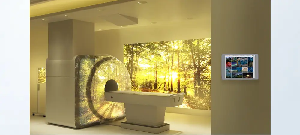 閉ざされた空間、響き渡る機械音。不安と緊張でいっぱいだったMRI検査が、もう古い!MRIアンビアンスシステムは、プロジェクションマッピングとRGBライトで無機質なMRI室を幻想的な空間に変貌させます。入室から始まる映像と音楽は、まるで未来への旅へ誘う魔法。子供たちの緊張も、ワクワクする冒険へと変わります。リアルタイムで変化する色彩は、まるで映像に入り込んだような没入感を与え、検査中の不安を優しく包み込みます。あなたの心を解き放ち検査を特別な時間に変える。